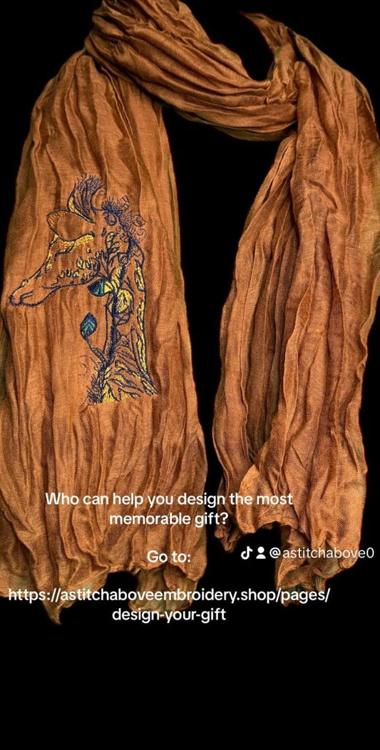 Delicate embroidered scarfs, shawls, pashminas and more. We can also custom embroider...