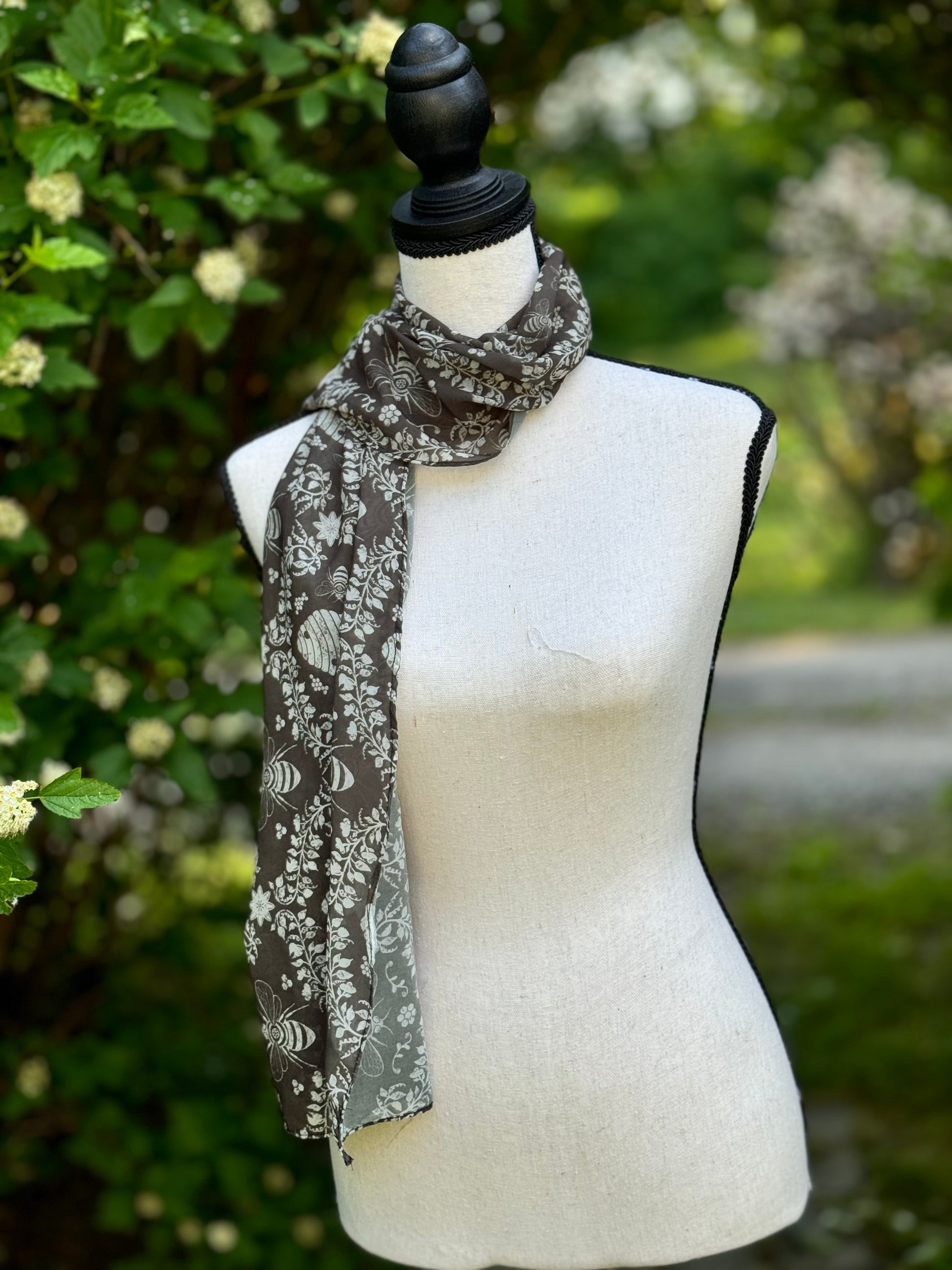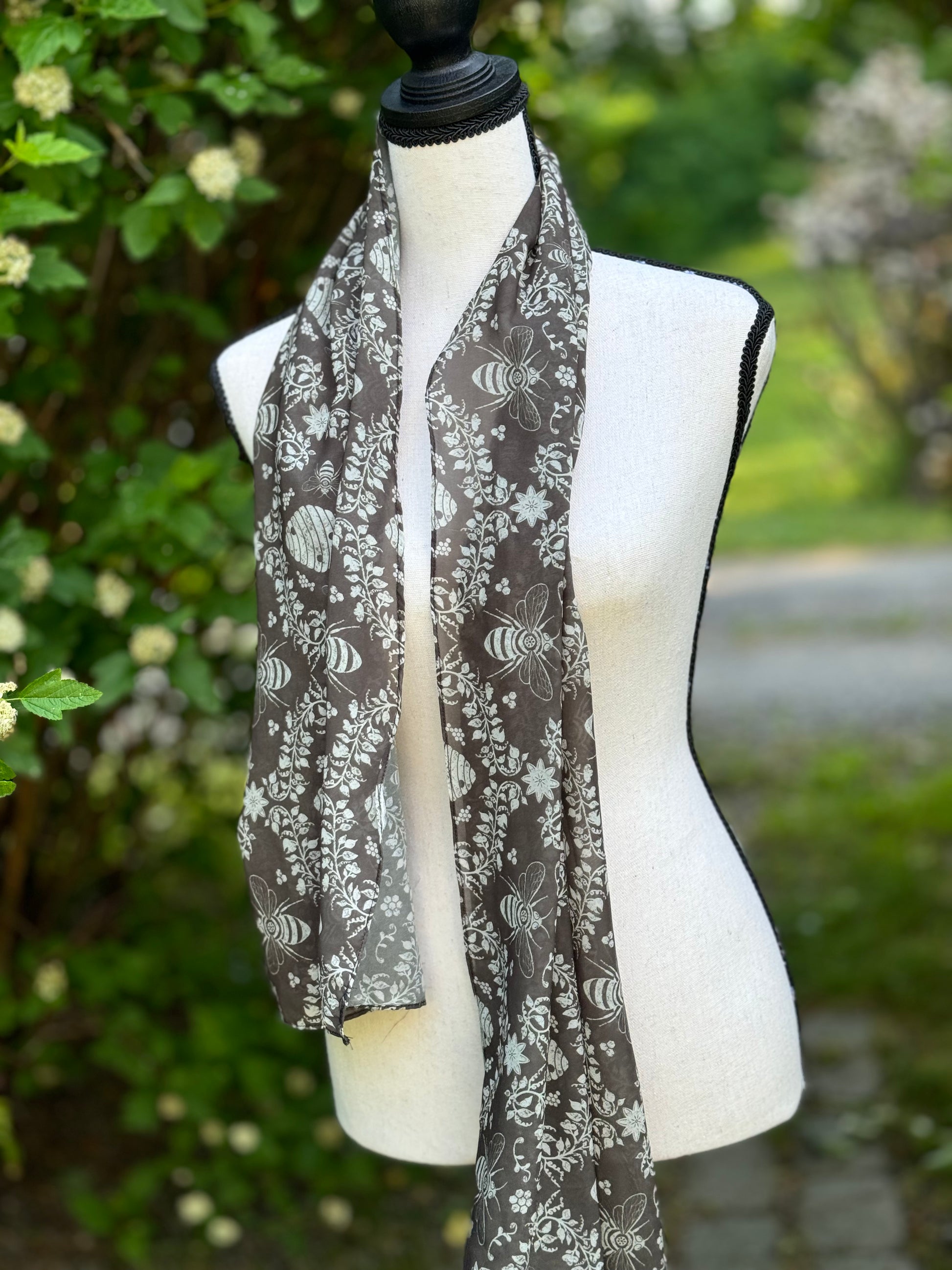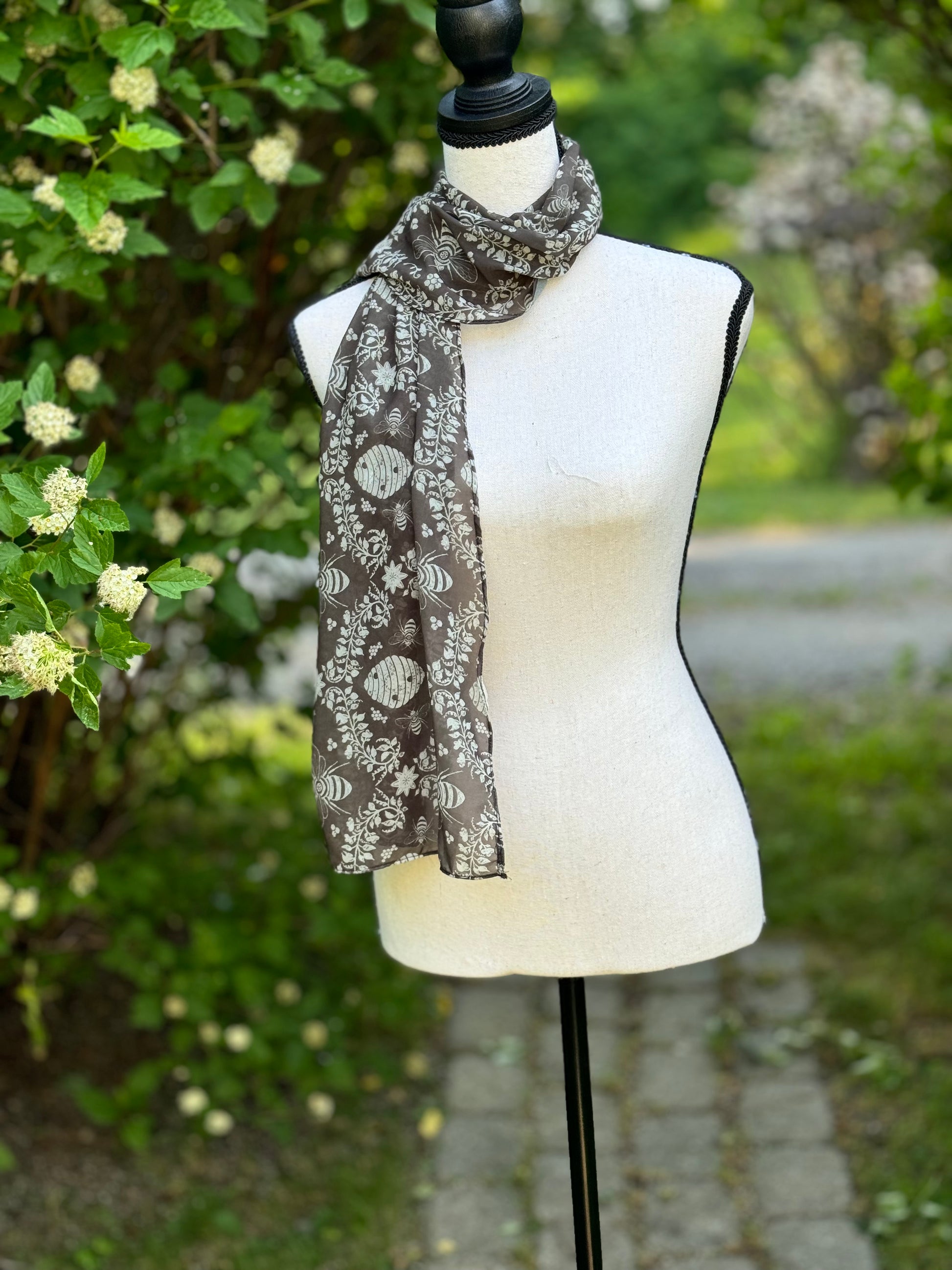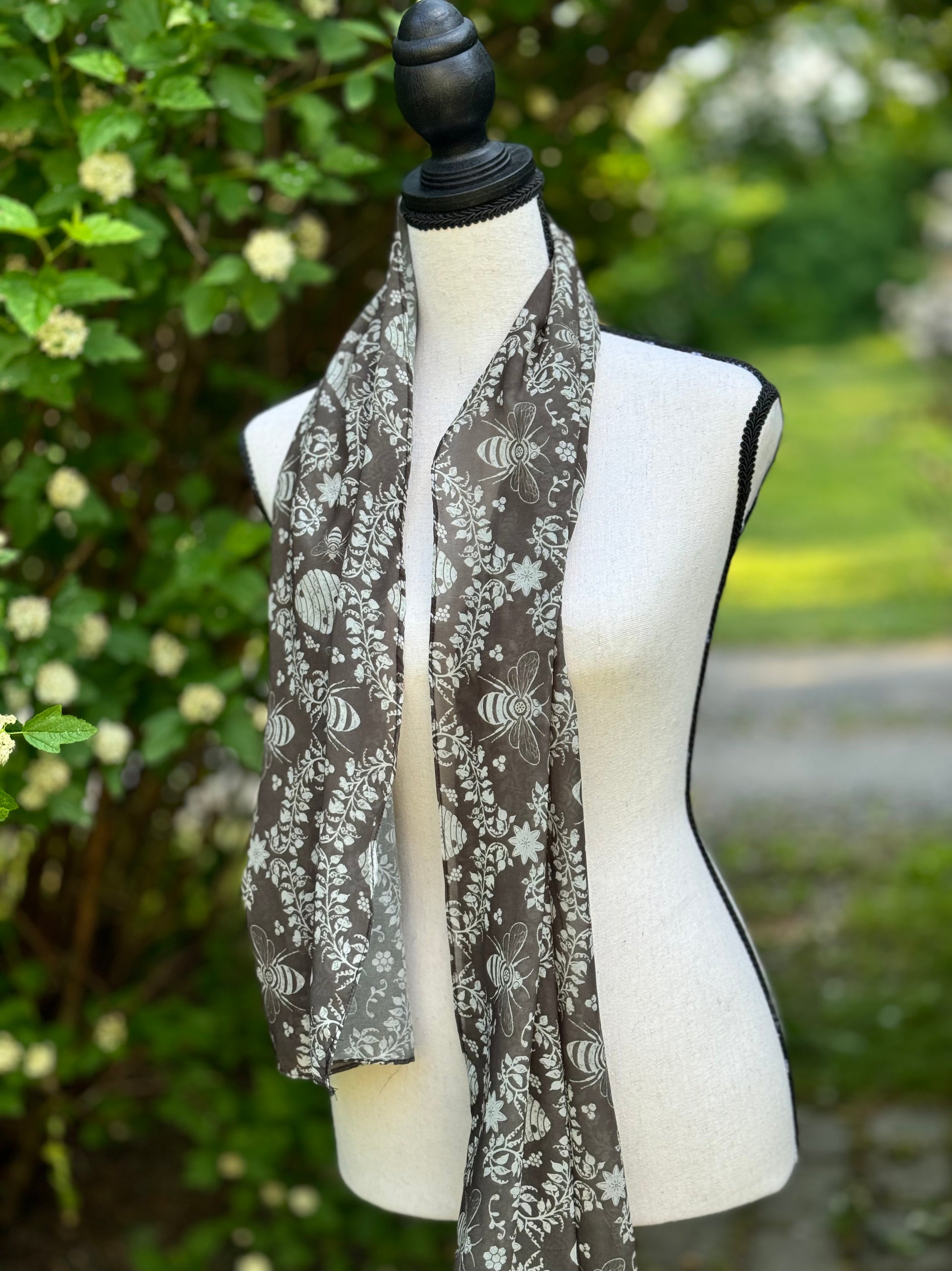 Soft Chiffon Summer Scarf Black Hives and Bees
