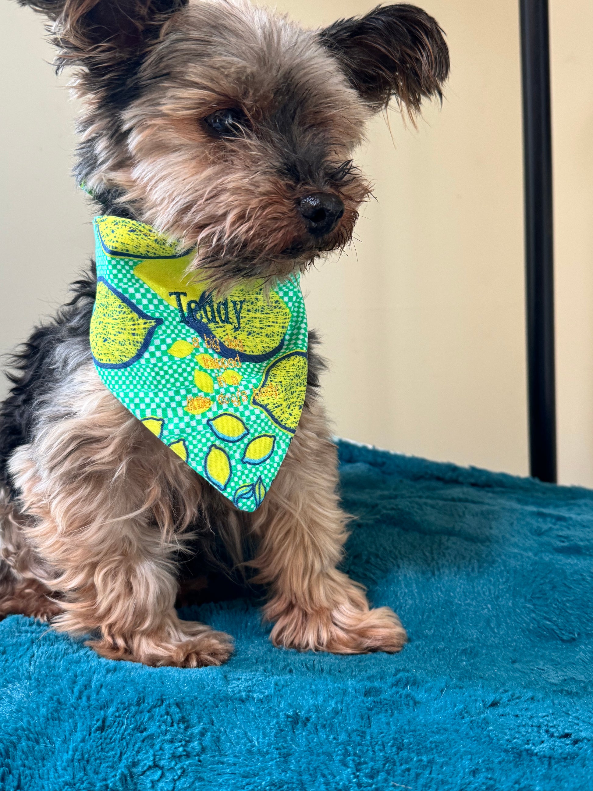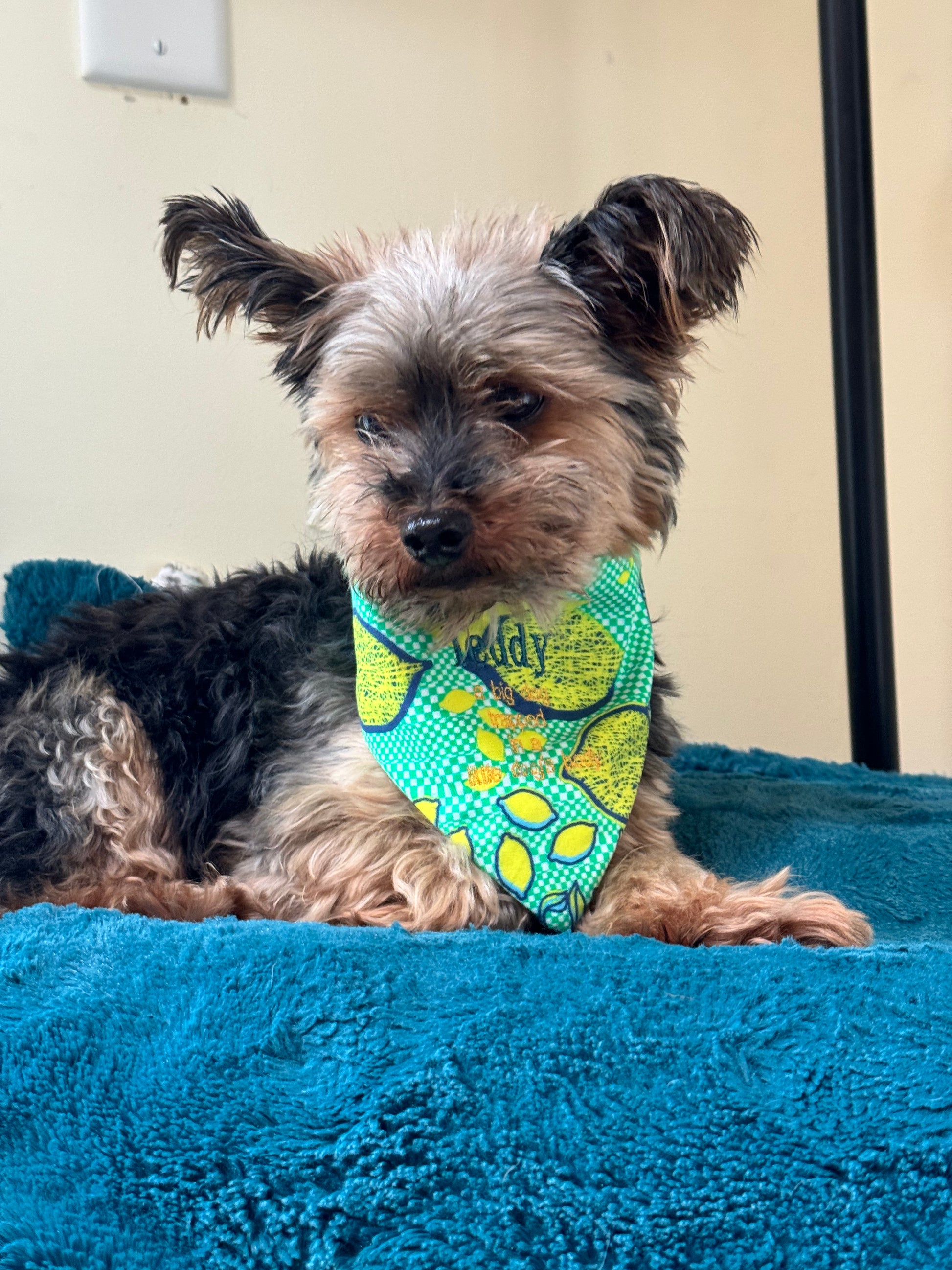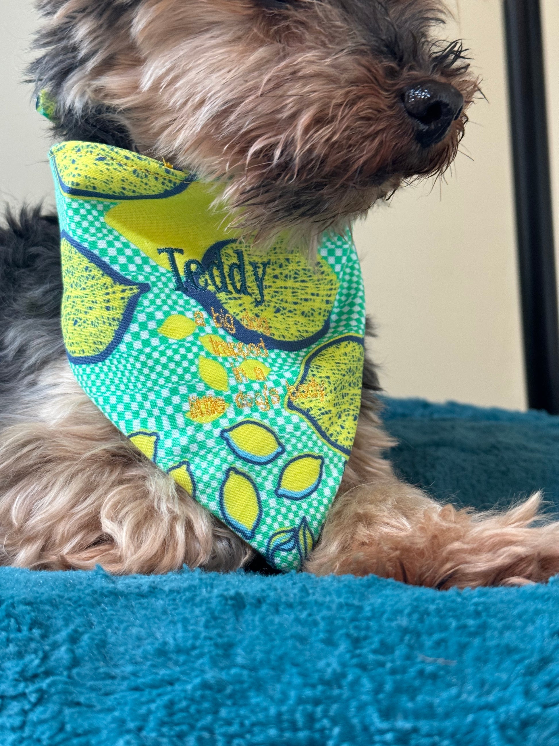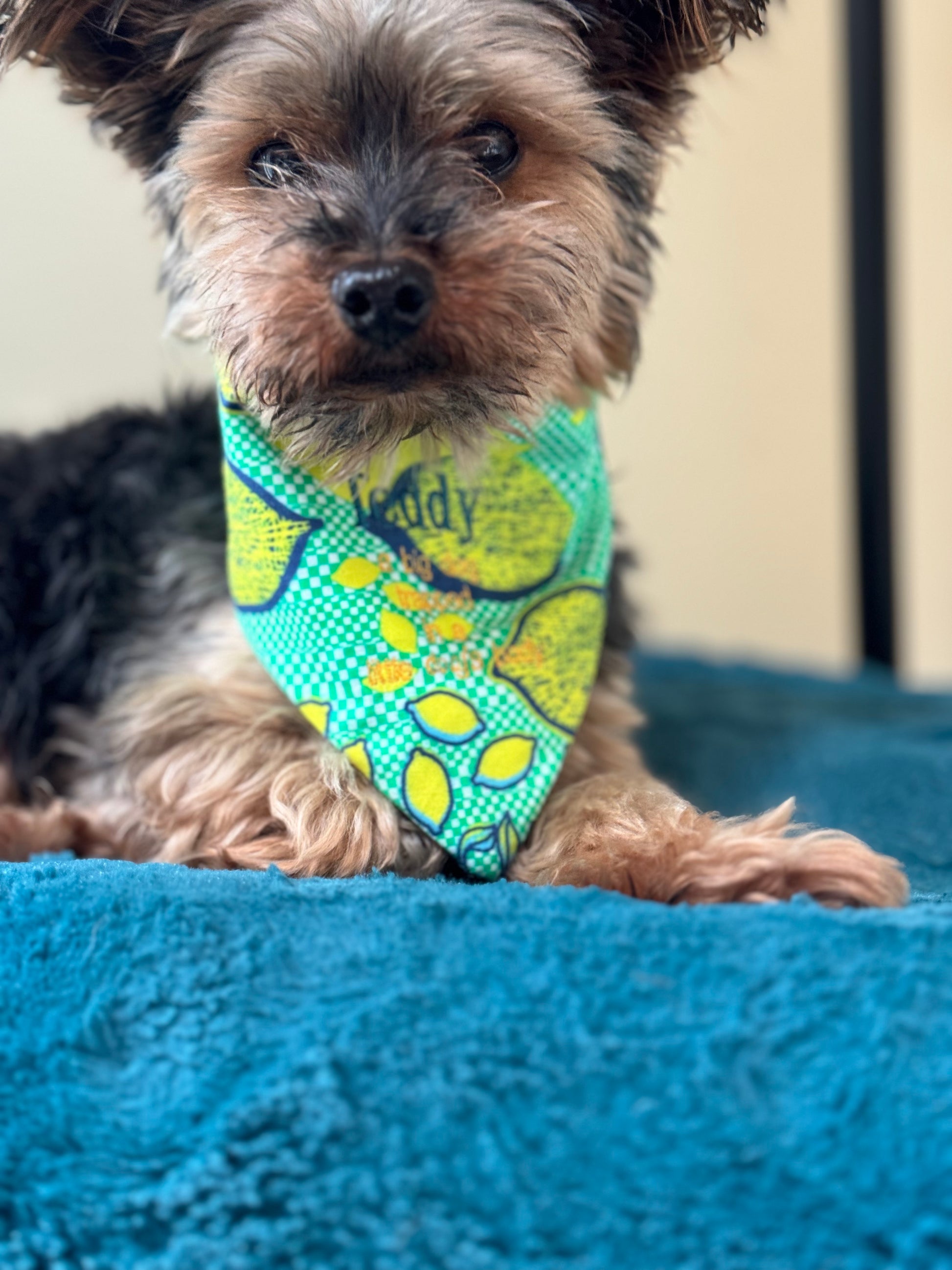 Introducing the Summer Dog Lemon Bandana, a perfect accessory for your furry friend! Made from 100% cotton, this bandana is not only stylish but also durable and washable for ultimate convenience. Customize it with your pet's name for a personalized touch. Keep your dog cool and fashionable this summer with our bandana.