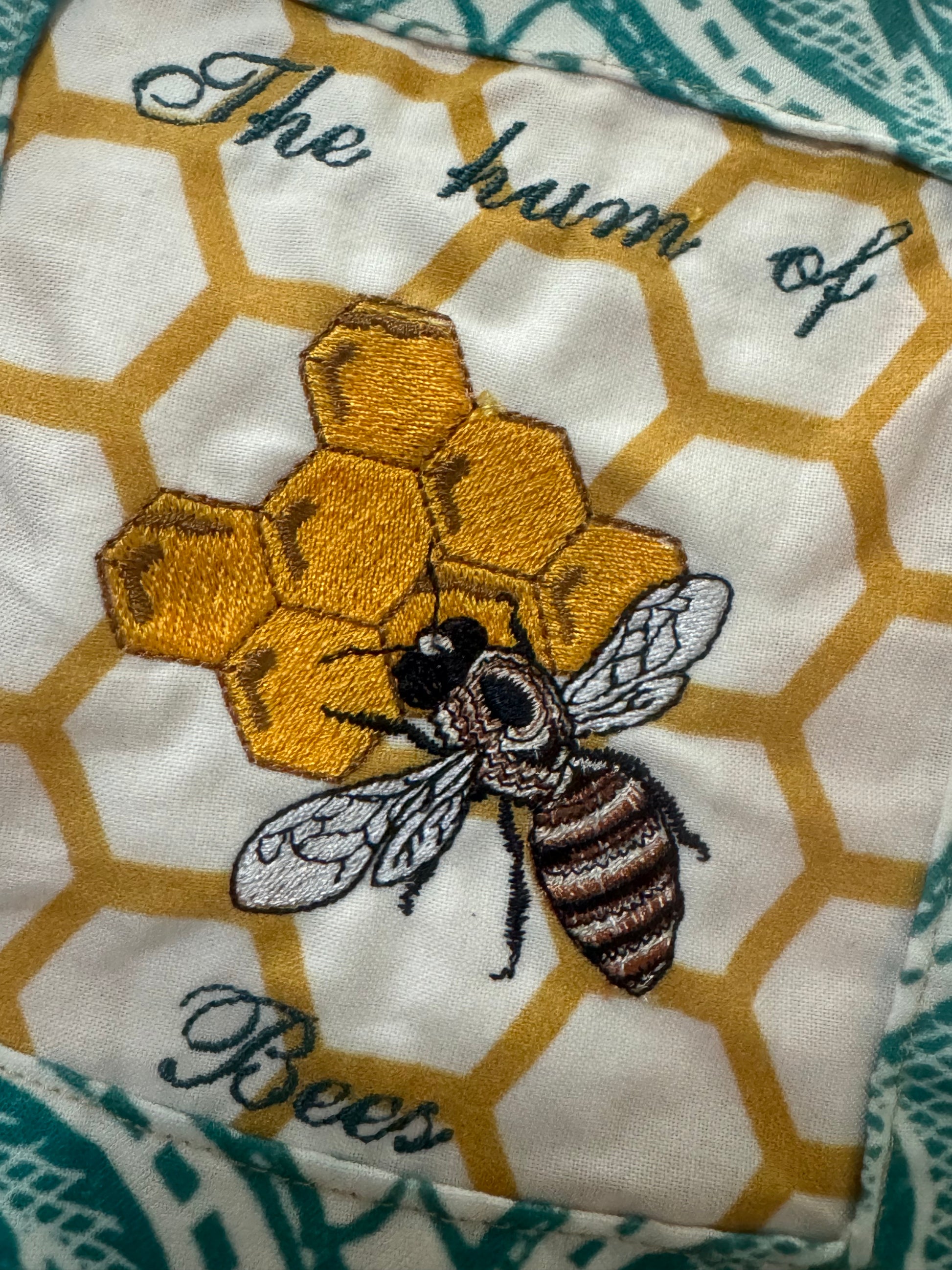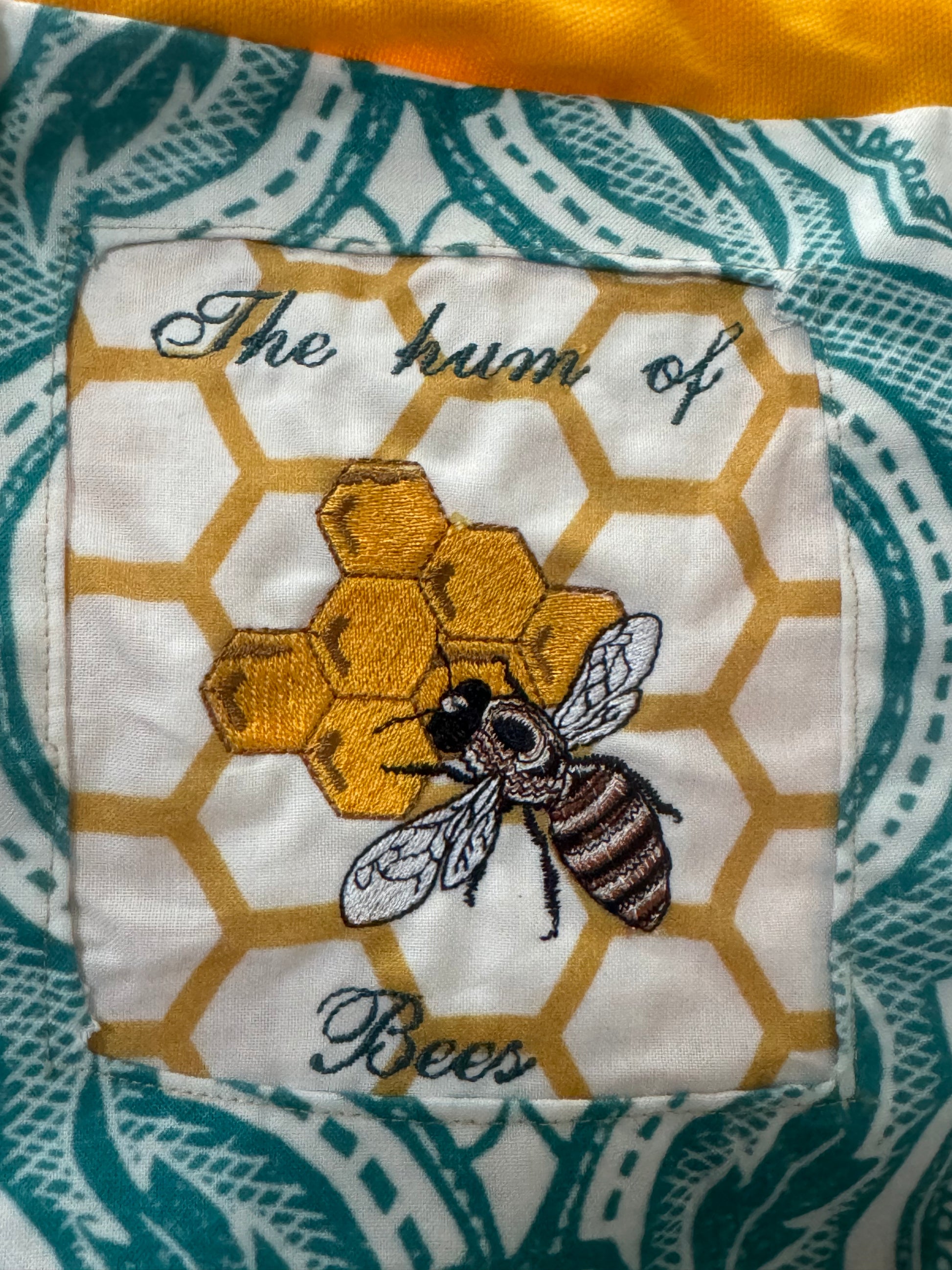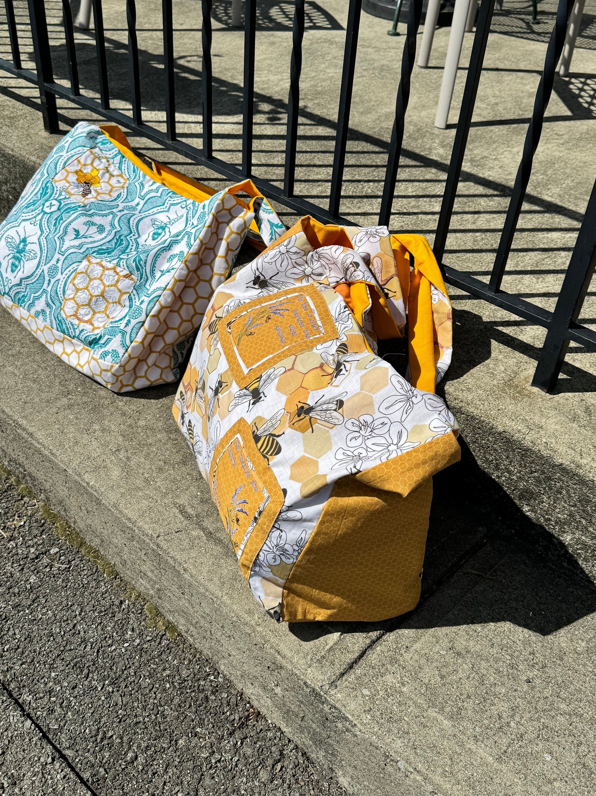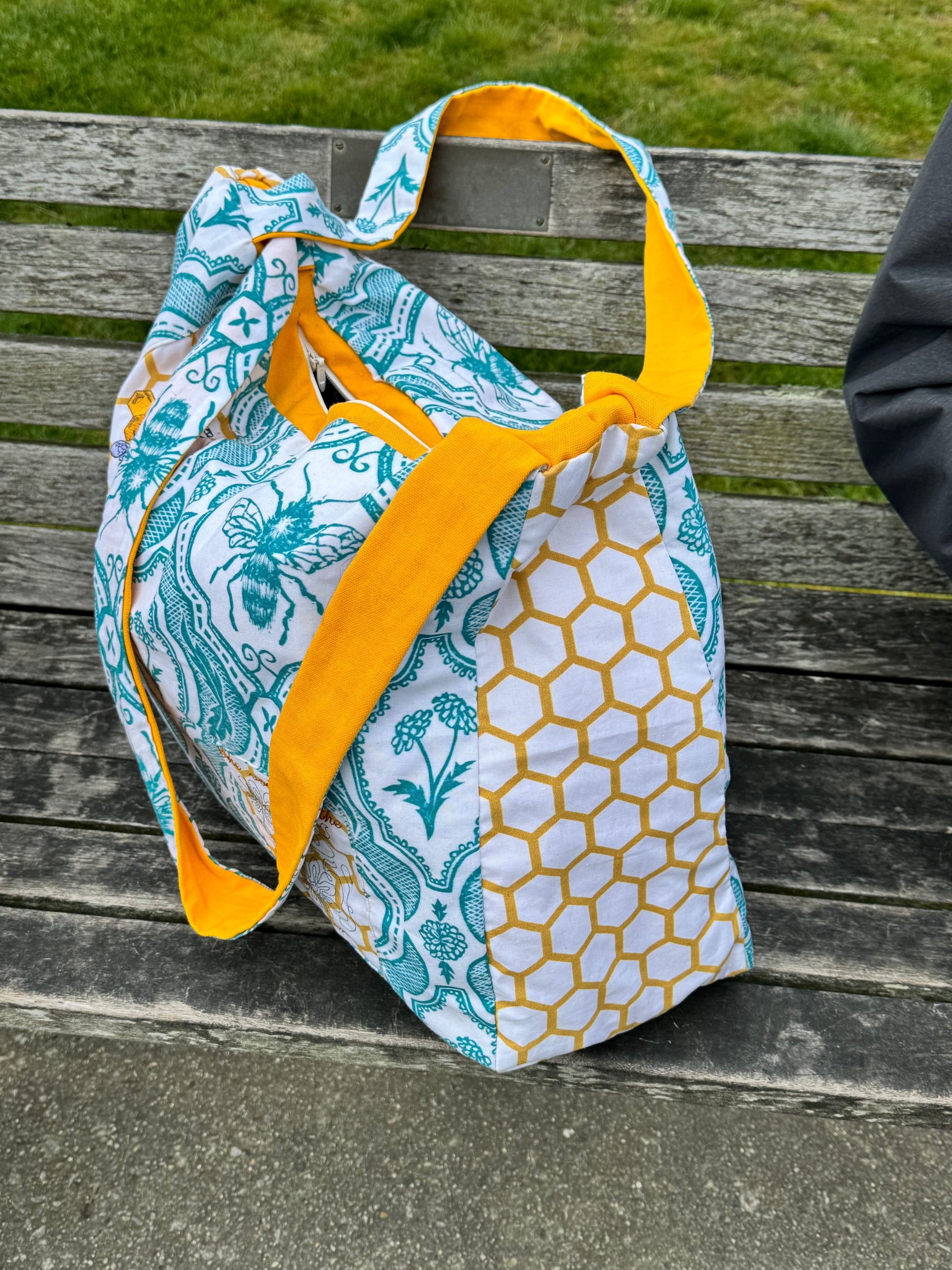 Introducing the hum of Bees Farmer's Market Tote, a large eco-friendly cotton tote perfect for any errand. Lined with sturdy canvas and featuring a vibrant bee-themed design, this versatile tote is titled "The Hum of Bees is the Voice of the Garden." Use it for overnight trips, farmers market visits, or as a chic day bag with its zippered closure. And the best part? It's durable and machine washable.